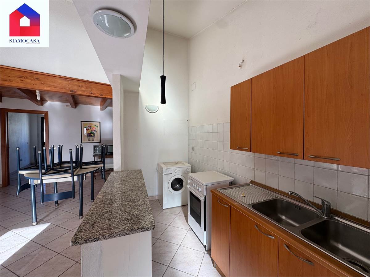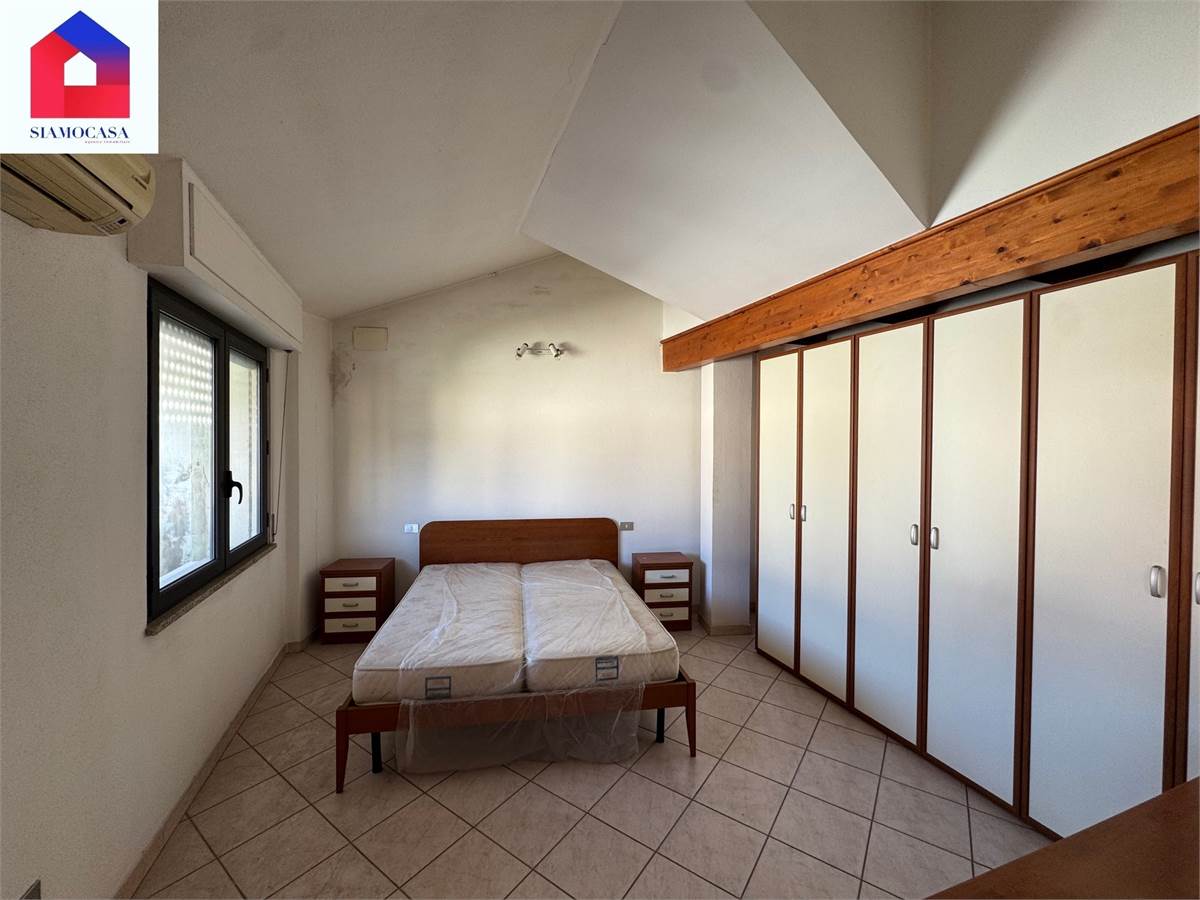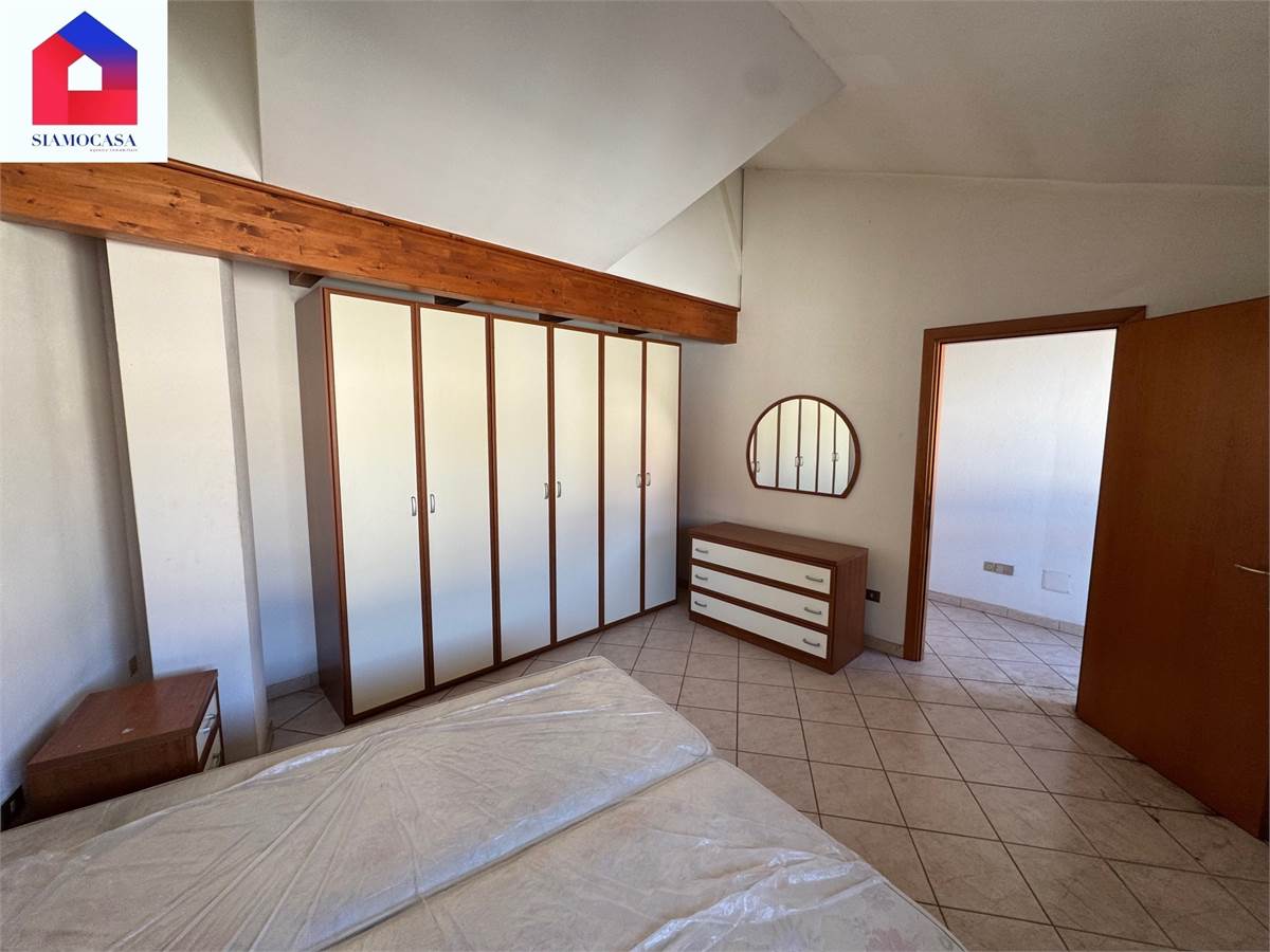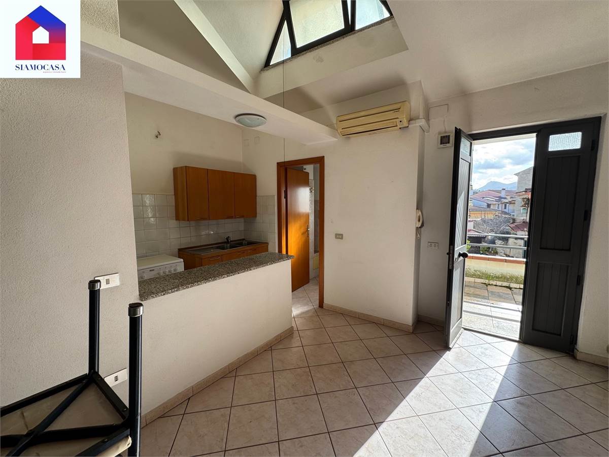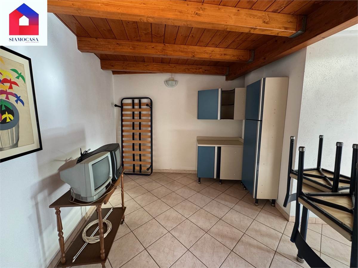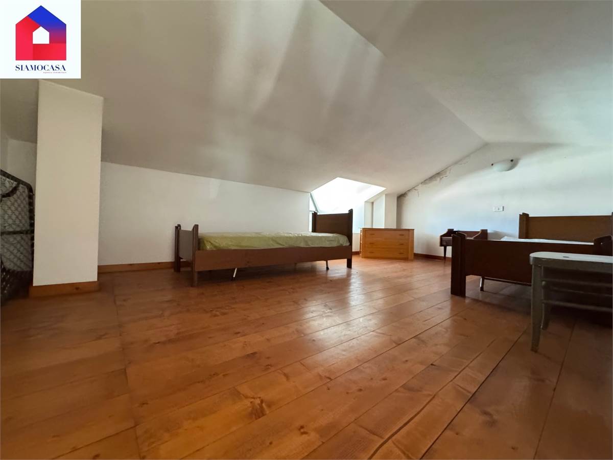 al primo piano, con ingresso da viale di Vittorio, c’è l’alloggio che ha la sua entrata indipendente, il soggiorno con l’angolo cottura a vista, una camera da letto matrimoniale, il bagno con la doccia e due balconi; piano superiore, soppalcato, dove ci si arriva con una scala in legno e in cui troviamo una seconda camera.